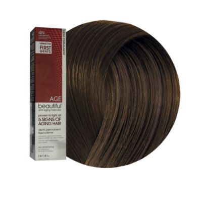 This is one of the more popular shades of brown hair color right now. Permanent hair color proven to fight thinning, wiry gray, dryness, dullness and turning gray. Women of all ages are beautiful. This dark shade is a beautiful color for people who have dark brown hair. I came across this age beautiful hair dye and saw the the little hair swatch of it, and it was as close to the color i was looking for as i was going to get.